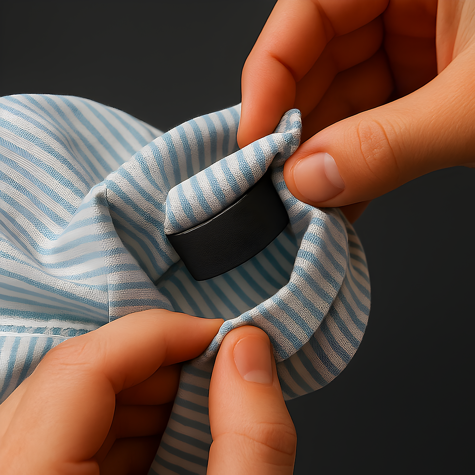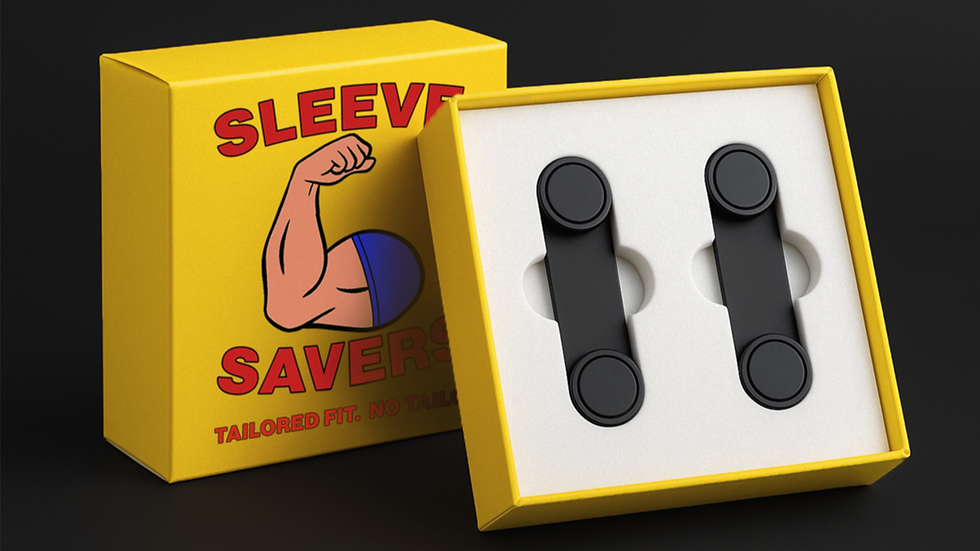 Sleeve Savers™ are a flexible, magnetic device designed to give t-shirt sleeves a custom fit instantly. Each pair discreetly and comfortably tightens excess fabric from the inside of you sleeves, which enhances the appearance of your arms and gives you a polished, tailor-quality look that lasts all day.